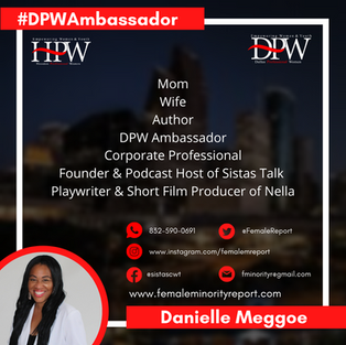 Over the last year, DPW member Danielle Meggoe not only authored, published and went on a book tour to promote Female Minority Report, but she also wrote and produced a short film Nella, continued to stream her Sistas' Talk Podcast and facilitate conversations about diversity in the workplace. As a corporate professional, Danielle's leadership has helped surface voices of employees that are working to make positive, inclusive changes to the workforce. By embracing all the facets of diversity, she helps connect and facilitate conversations that help us grow!