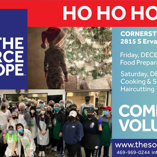 Serving Hope: We prepare and serve meals to the homeless and elderly on the 4th Saturday of every month. We work with our local communities to provide hot home-cooked meals, free haircuts, showers, and clothing to the homeless of the DFW area. We also provide free home-cooked meals to underprivileged students in Collin County.